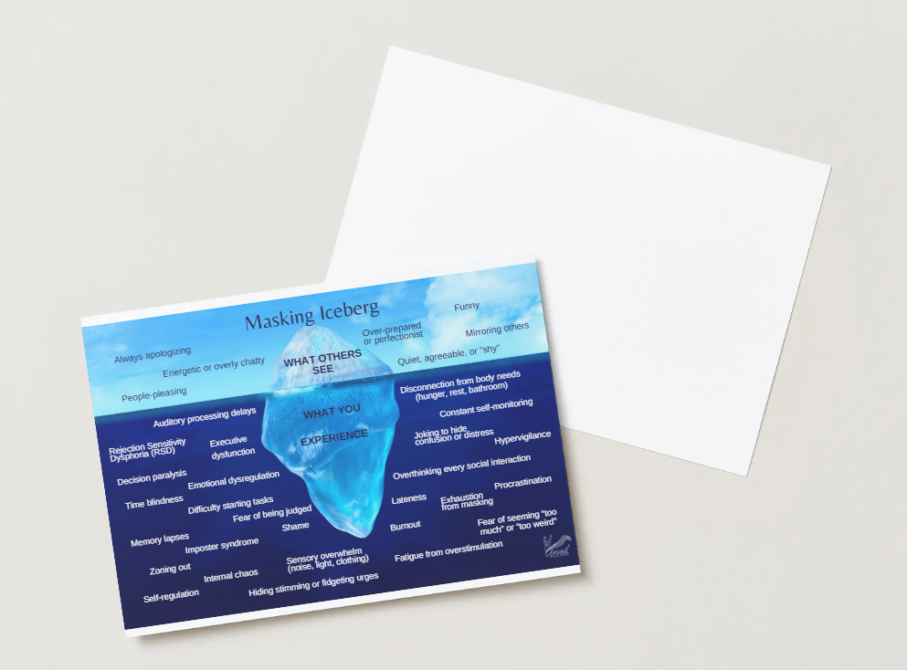 Uncover what’s really beneath the surface. This visual tool helps you explore the hidden layers of ADHD masking: what others see vs. what you’re really experiencing. Great for self reflection, coaching sessions, or sharing with loved ones.